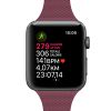 Apple Watch Serie 3. Tipo di display: OLED, Risoluzione del display: 312x390 Pixel, Touch screen. Memoria flash: 8 GB. Wi-Fi. GPS (satellitare). Durata della batteria: 18 h. Peso: 40,5 g. Impermeabile fino a: 50 m, Materiale della scocca: Alluminio, Colore struttura: Space Gray. Sistema operativo incluso: WatchOS 4. Cinturino color aubergine compatibile.
